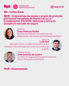 Segundo Wilsinho Pereira, o tema reflete um momento importante para o setor. “Essas mudanças vêm ao encontro dos anseios do mercado de seguros, e é fundamental que os corretores estejam atualizados sobre seus impactos”, destacou. O assunto, inclusive, já foi abordado pelo Sincor-PR durante os eventos do ciclo 2025 nas cidades de Curitiba, Londrina, Maringá, Cascavel e Ponta Grossa.