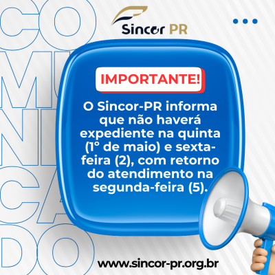 O Sincor-PR comunica que conforme negociado na Convenção Coletiva de Trabalho (CCT) 2023, cláusula 35, parágrafo 2º, o Dia do Securitário, na terceira segunda-feira de outubro, pode ser compensado em outra data, caso haja feriados próximos que possam ser prolongados.